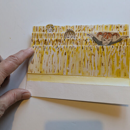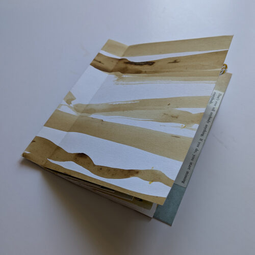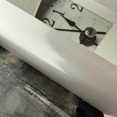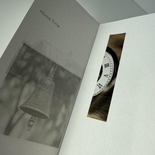 This is a simple pamphlet book, with laminated printed covers. It includes collaged images and pen and ink. I made the book because I was thinking of the very abstract notion of time. Although it can be measured precisely, the sense of time – and time passing – is a very subjective experience. I was also curious about the notion that time can be ‘owned’ – that I might be wasting or saving ‘your’ time or my own time. This book doesn’t remotely do the subject justice but it is the beginning of something I might develop further.
